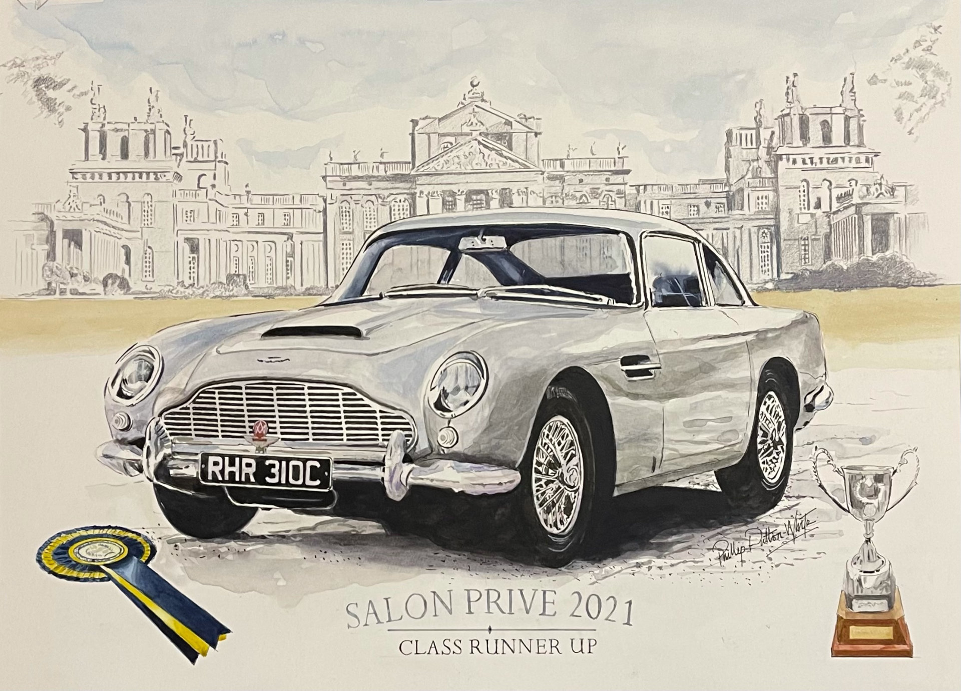 Phillip was commissioned to paint this Aston Martin DB5 which was the class runner up at Salon Prive 2021.